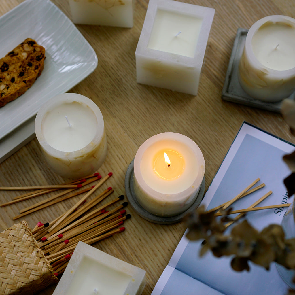 The candle shell uses different proportions of wax, and the interior uses soy wax and synthetic beeswax, with 4% to 5% aromatherapy essential oil added. When the candle is lit, the candlelight will be reflected through the outer shell, creating a profound and beautiful artistic conception that makes people relax and calm.