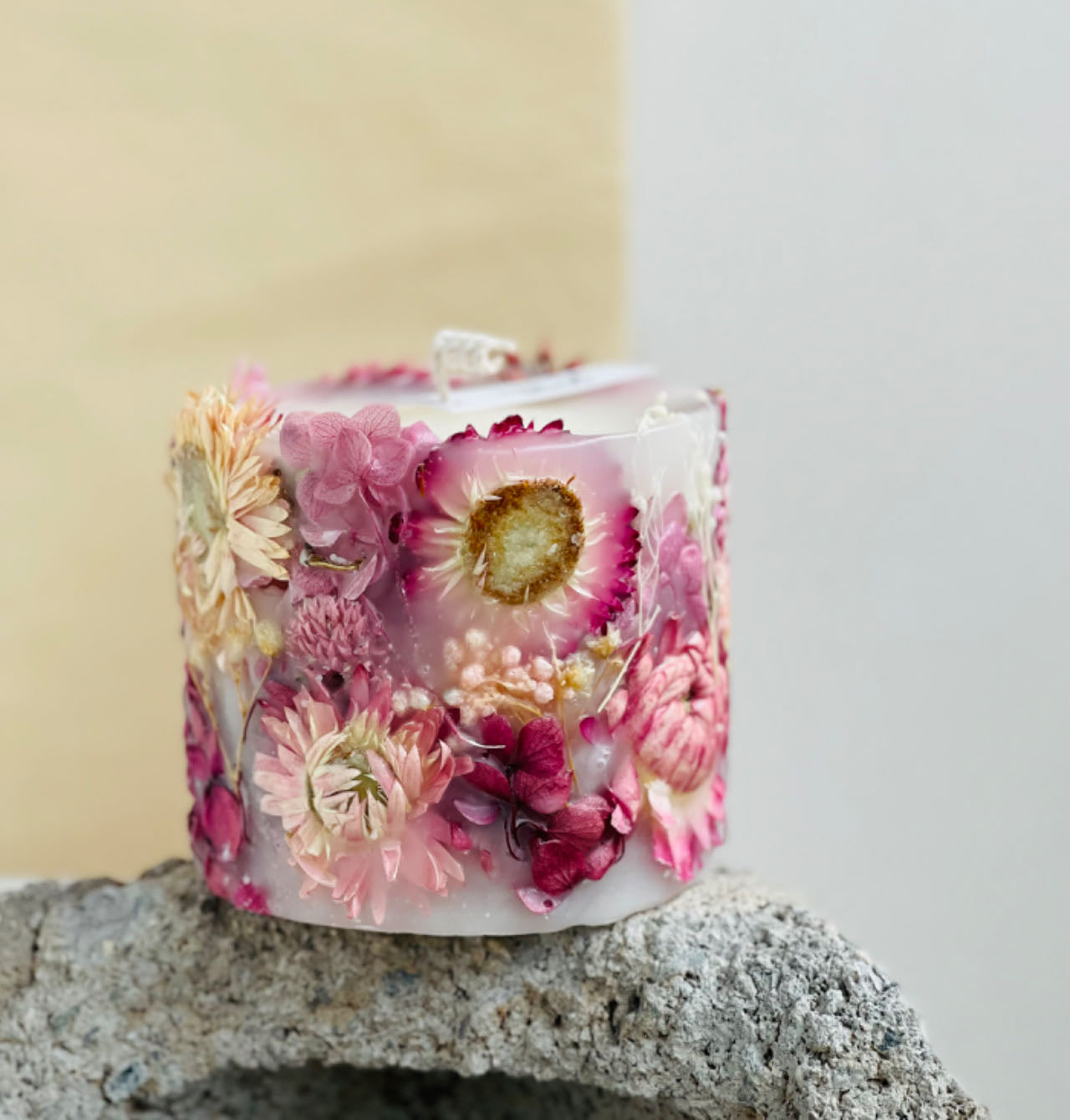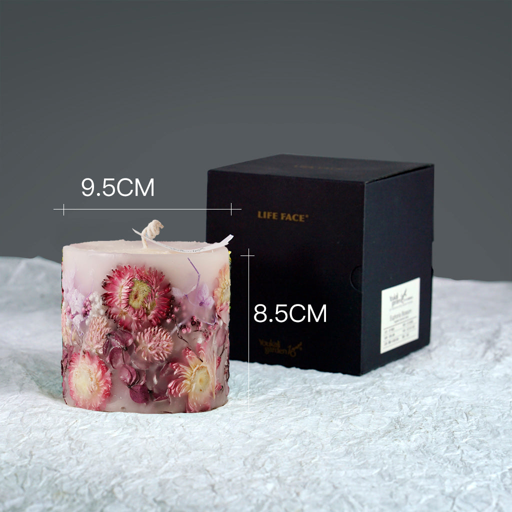 If there are decorations on candle’s surface, such as dried flowers, please remove them then light the candle to avoid the decorations from catching fire, causing unnecessary accidents. If there is no container for the candle, please put the candle on the Flame retardant tray before use and stop using the candle when it burned to the last 2 centimeters. Please keep the candle in a place out of the reach of children/pets while away from flammable materials, such as curtains, and make sure the candle is Kept within eyesight and used in a ventilated environment.