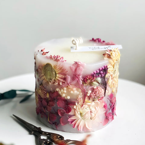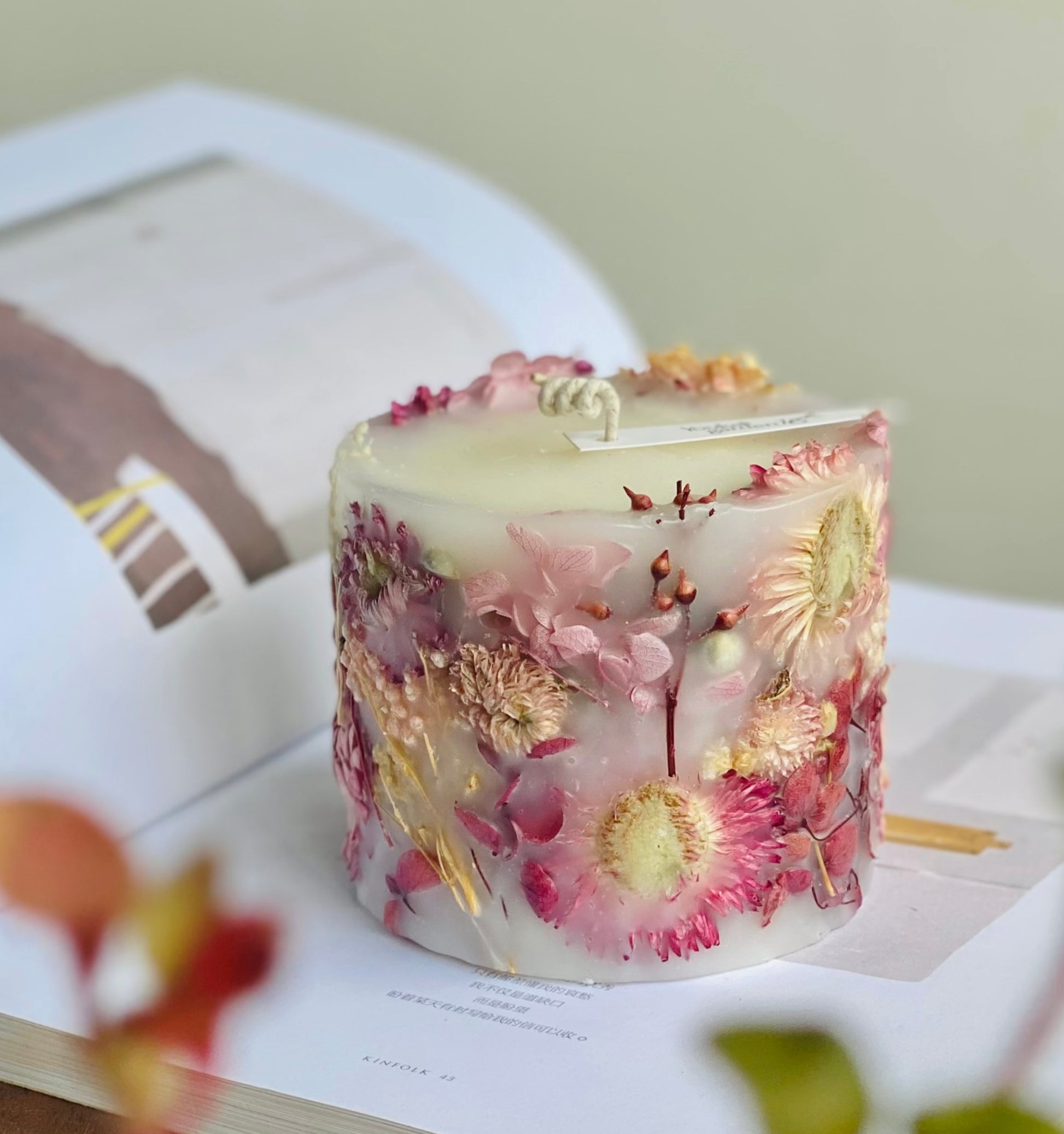 Design Story : This series of products is inspired by Impressionist paintings. Its rich colors and romantic expressions add a lot of beauty to our ordinary life. The outer shell of the product is made of different proportions of wax. The outer shell will remain after burning, and the light will shine through, making it romantic and warm. it's all handmade from wax and artificial flowers.