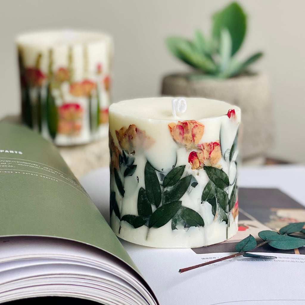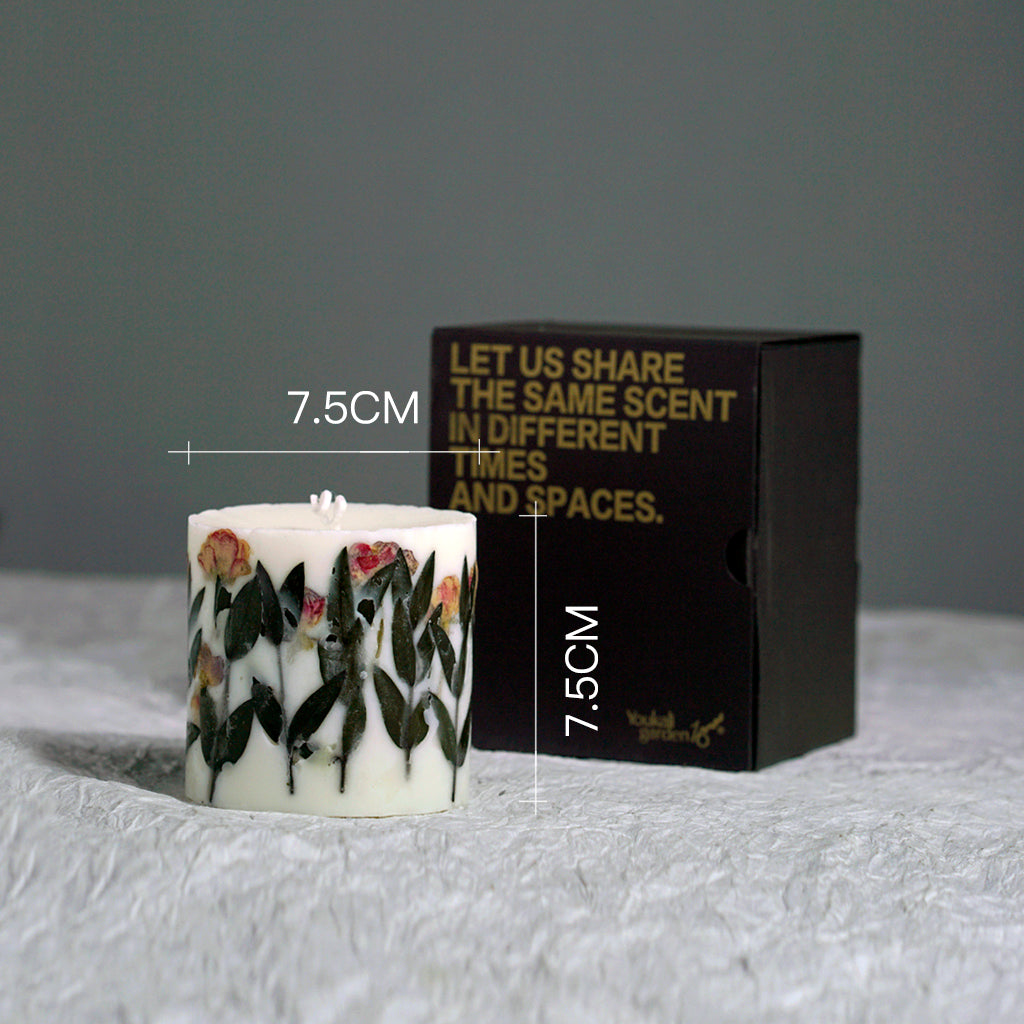 If there are decorations on candle’s surface, such as dried flowers, please remove them then light the candle to avoid the decorations from catching fire, causing unnecessary accidents. If there is no container for the candle, please put the candle on the Flame retardant tray before use and stop using the candle when it burned to the last 2 centimeters. Please keep the candle in a place out of the reach of children/pets while away from flammable materials, such as curtains, and make sure the candle is Kept within eyesight and used in a ventilated environment.