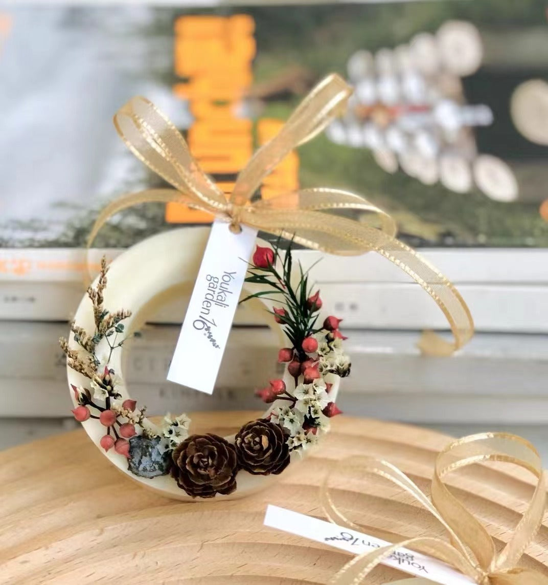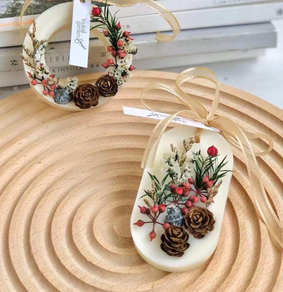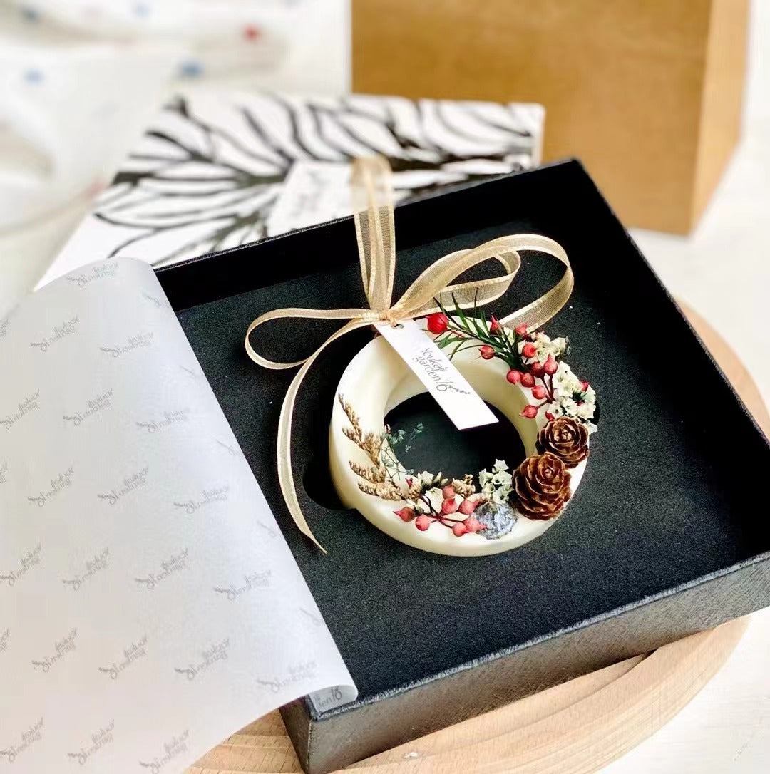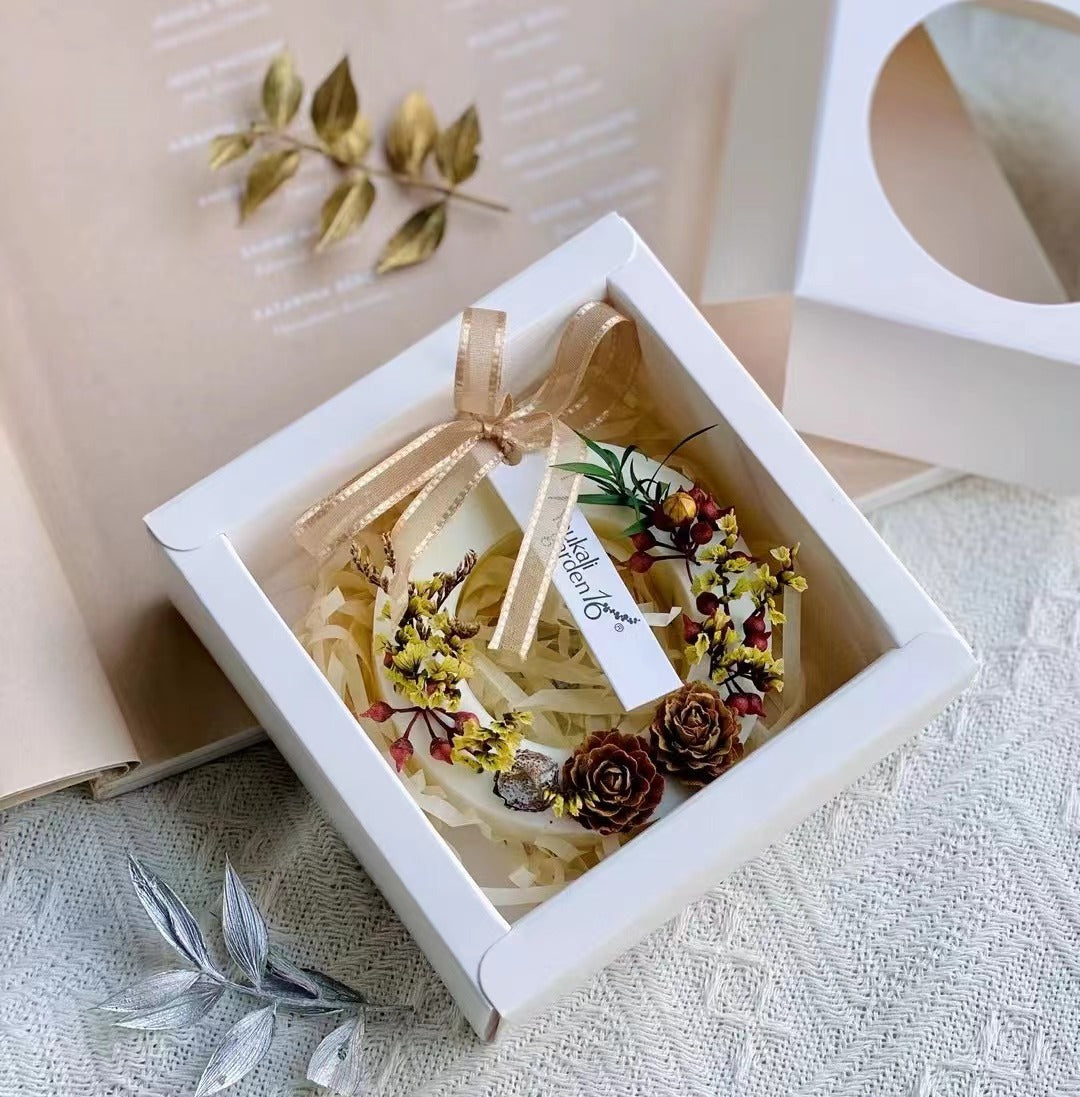 This is a product that is very suitable for gift giving. It contains soy wax, synthetic beeswax, and an appropriate amount of aromatherapy essential oils. The surface is hand-decorated with various Dry processed flowers. It is exquisitely fragrant and expresses your feelings.
