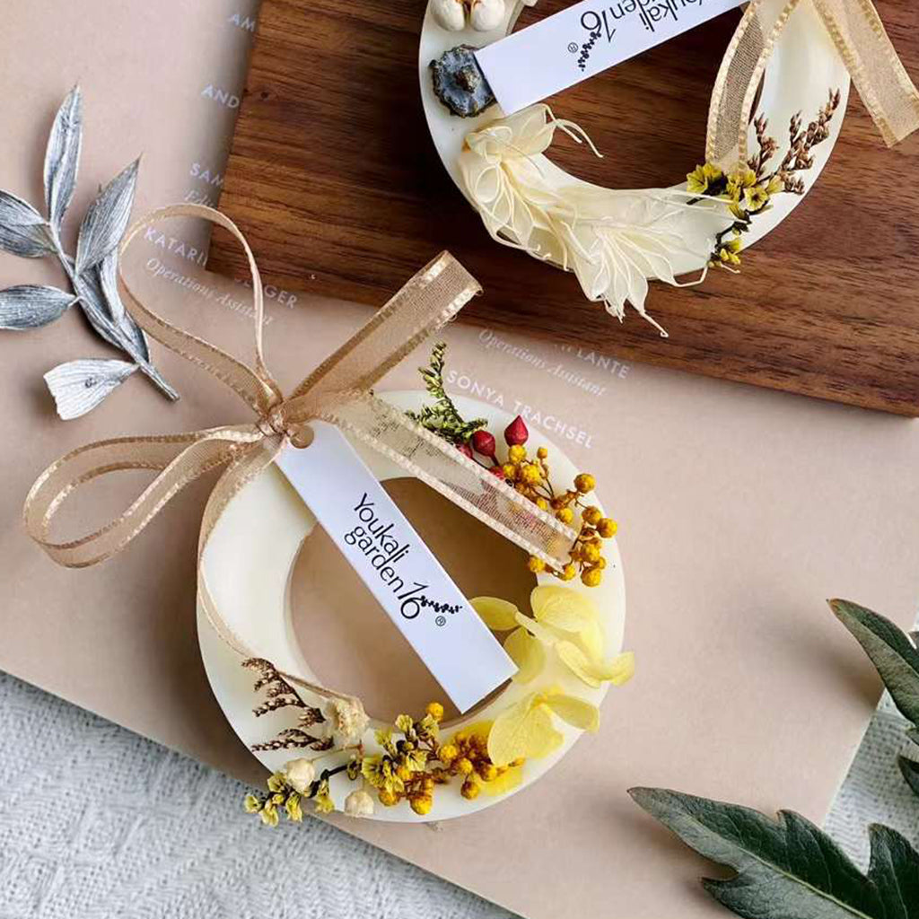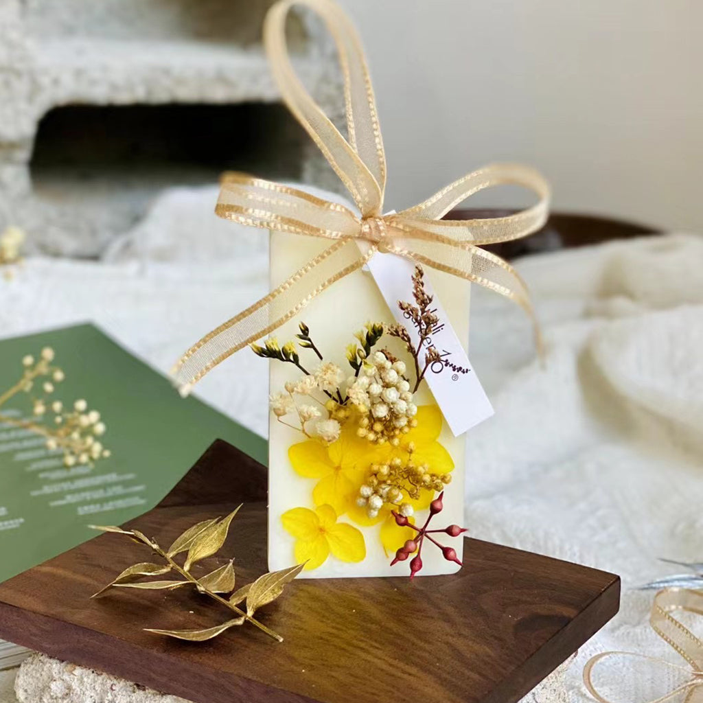 This is a product that is very suitable for gift giving. It contains soy wax, synthetic beeswax, and an appropriate amount of aromatherapy essential oils. The surface is hand-decorated with various Dry processed flowers. It is exquisitely fragrant and expresses your feelings.