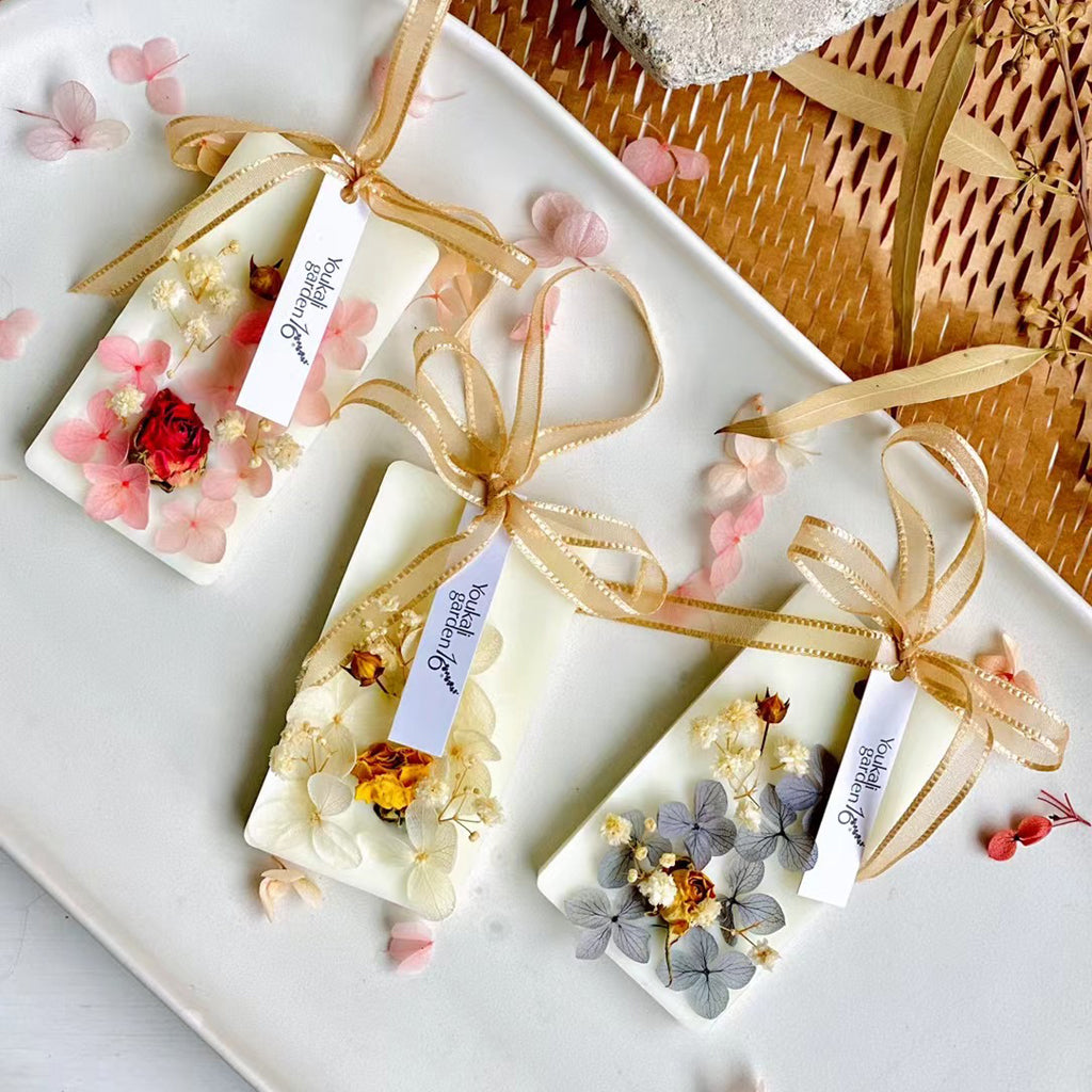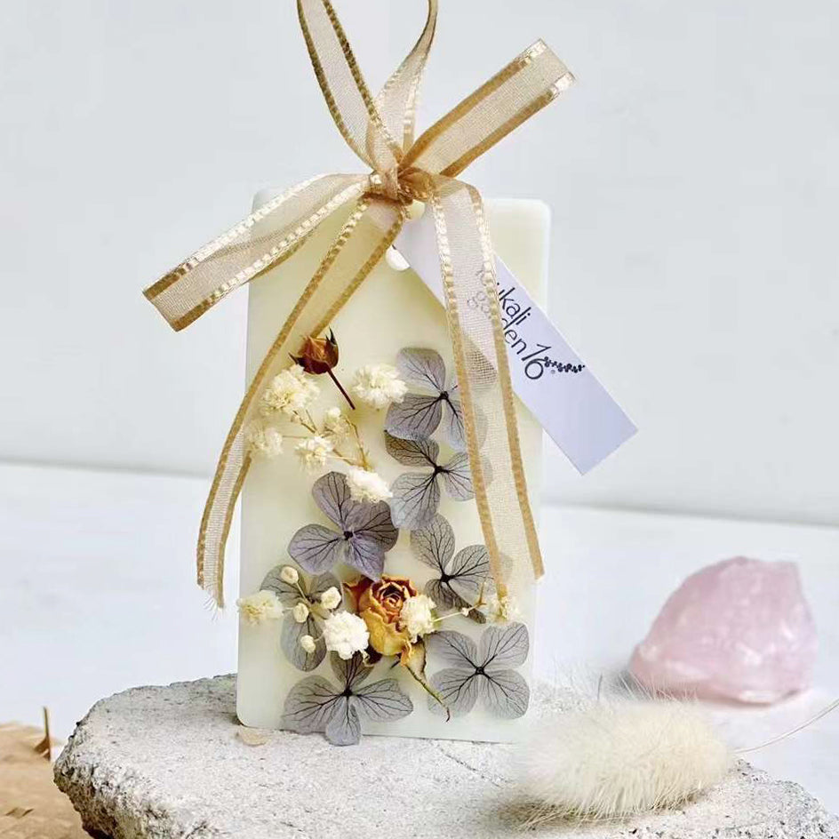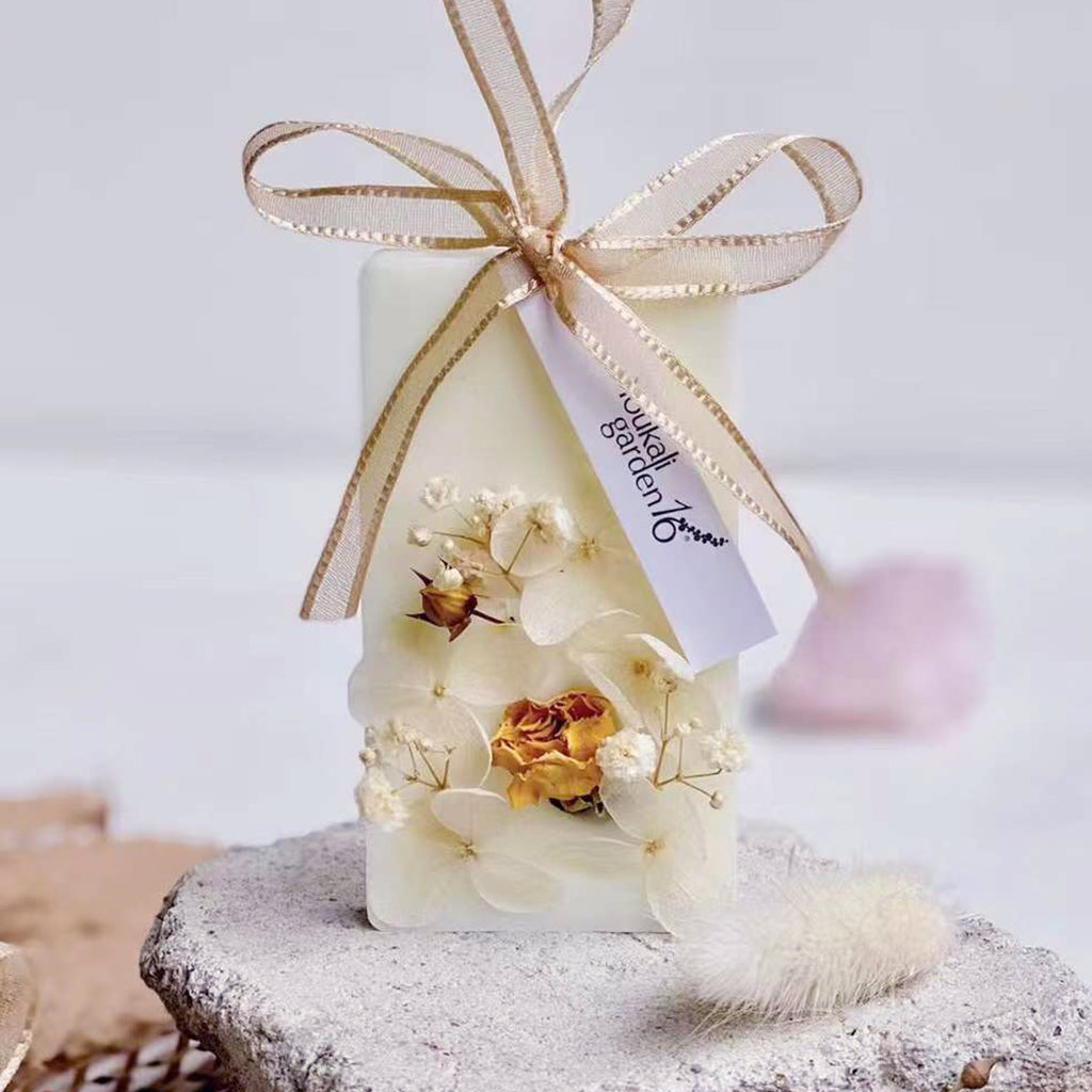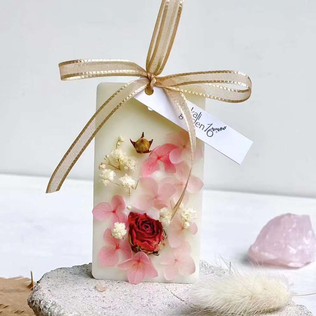 This is a product that is very suitable for gift giving. It contains soy wax, synthetic beeswax, and an appropriate amount of aromatherapy essential oils. The surface is hand-decorated with various Dry processed flowers. It is exquisitely fragrant and expresses your feelings.