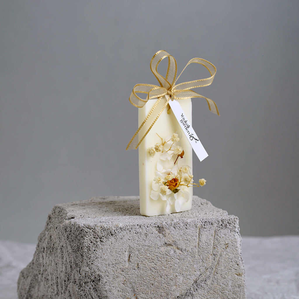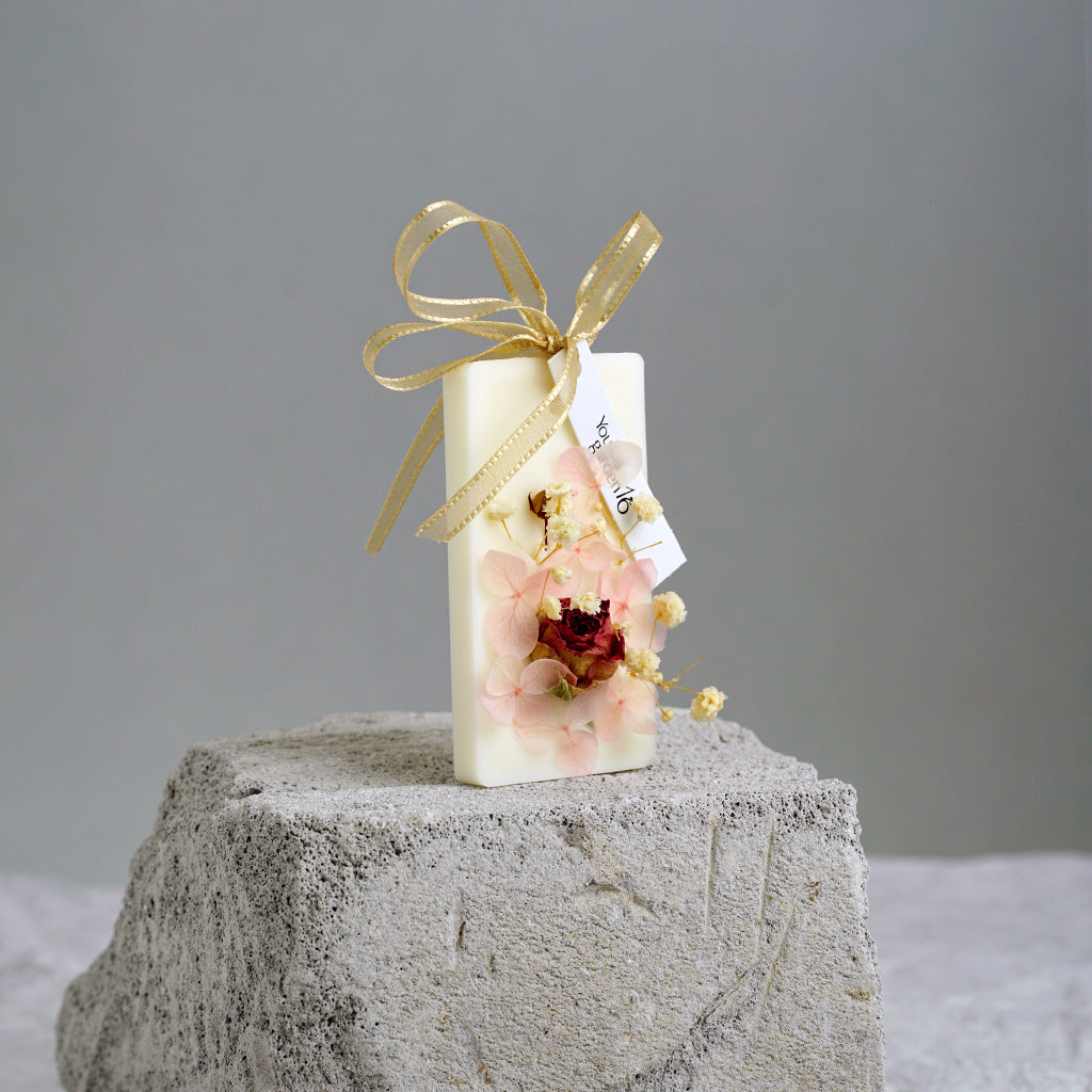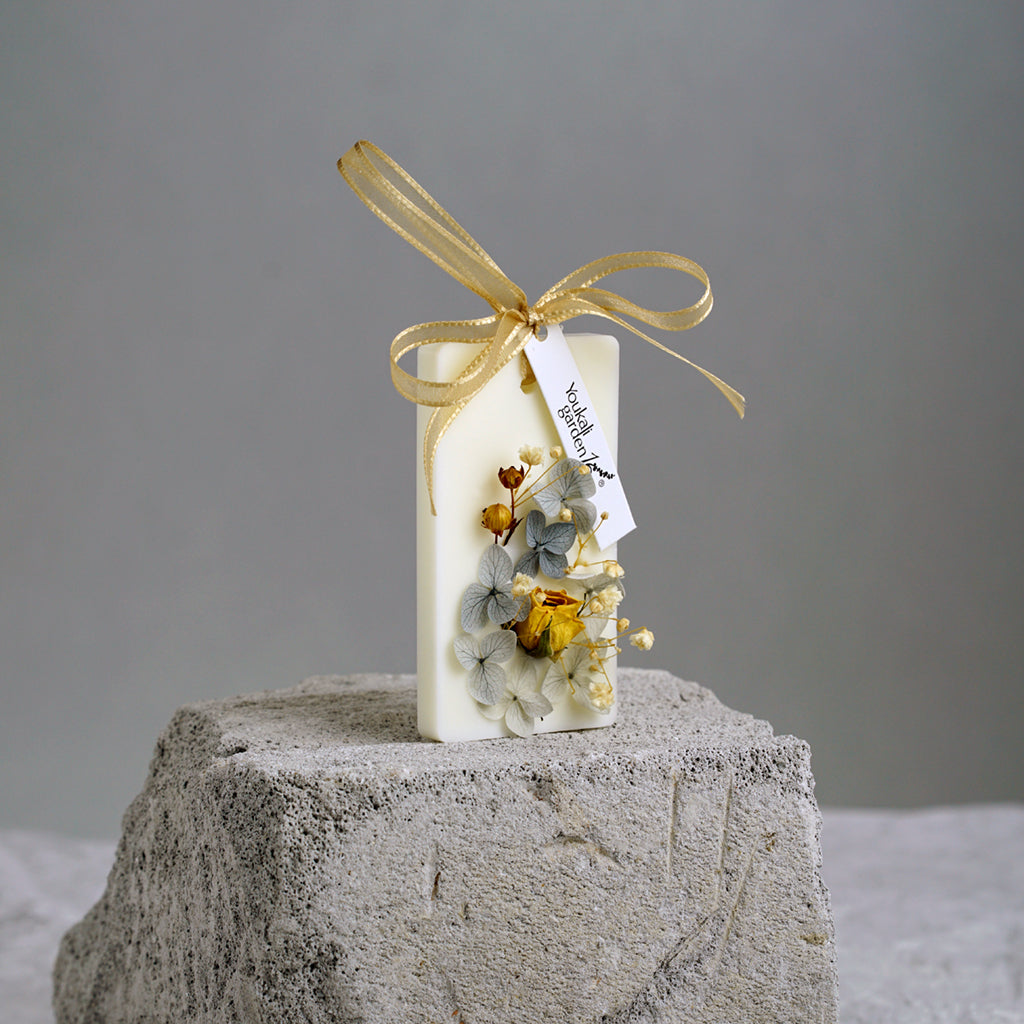This is a product that is very suitable for gift giving. It contains soy wax, synthetic beeswax, and an appropriate amount of aromatherapy essential oils. The surface is hand-decorated with various Dry processed flowers. It is exquisitely fragrant and expresses your feelings.