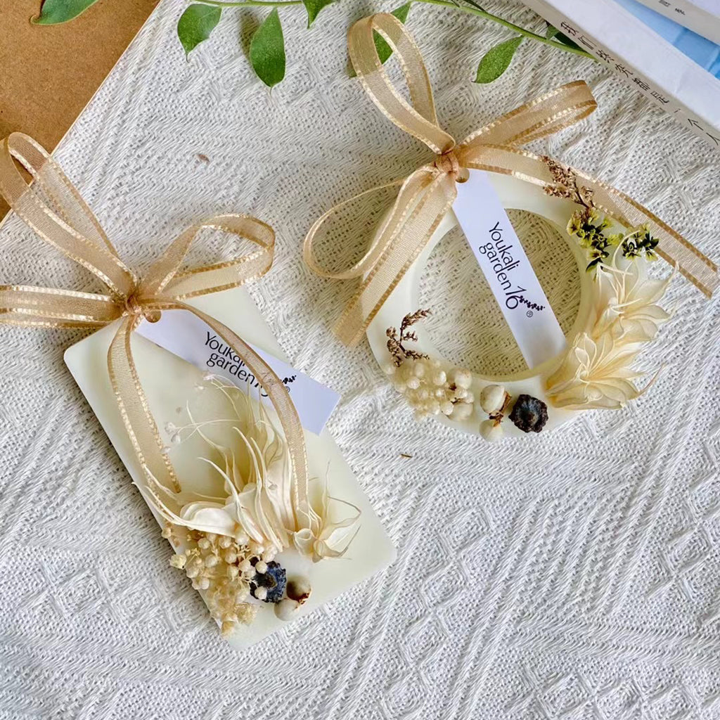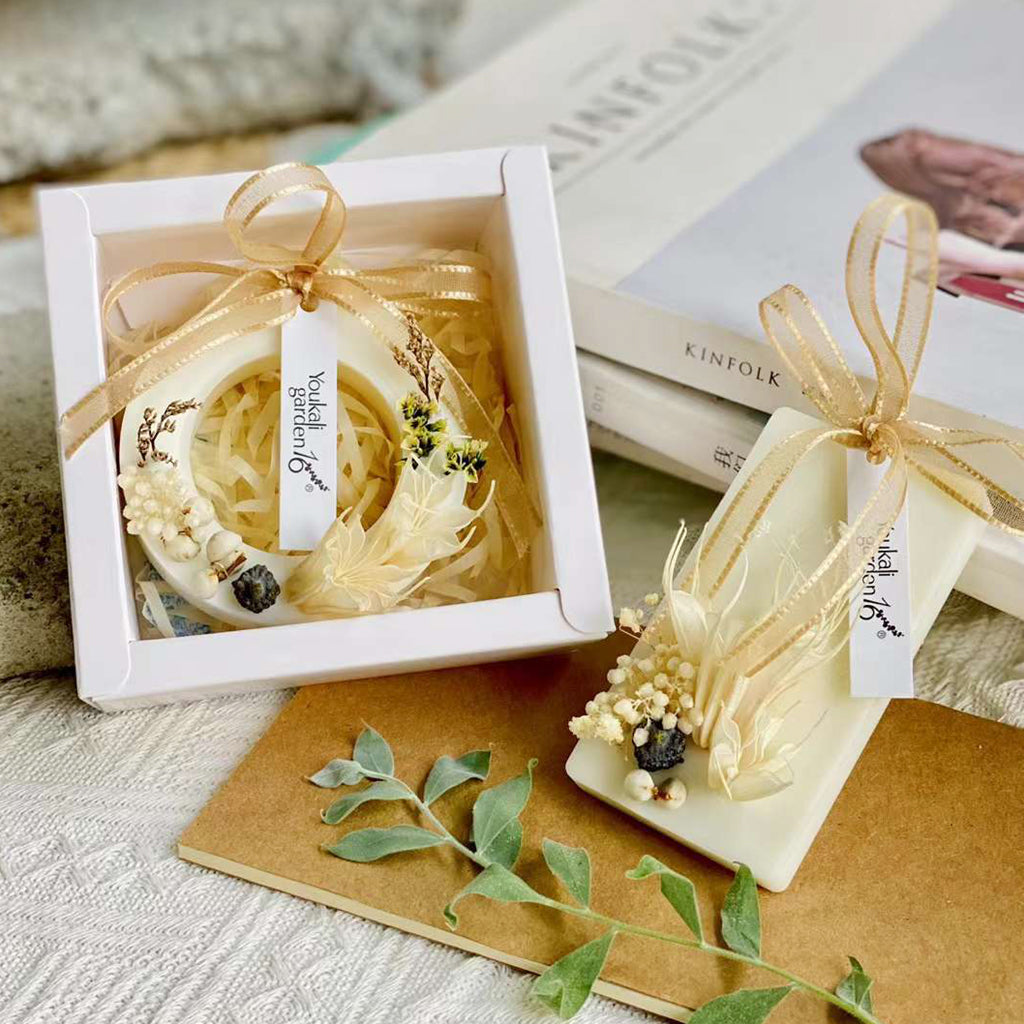 This is a product that is very suitable for gift giving. It contains soy wax, synthetic beeswax, and an appropriate amount of aromatherapy essential oils. The surface is hand-decorated with various Dry processed flowers. It is exquisitely fragrant and expresses your feelings