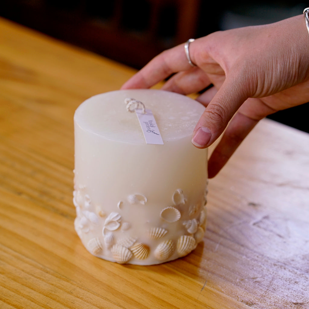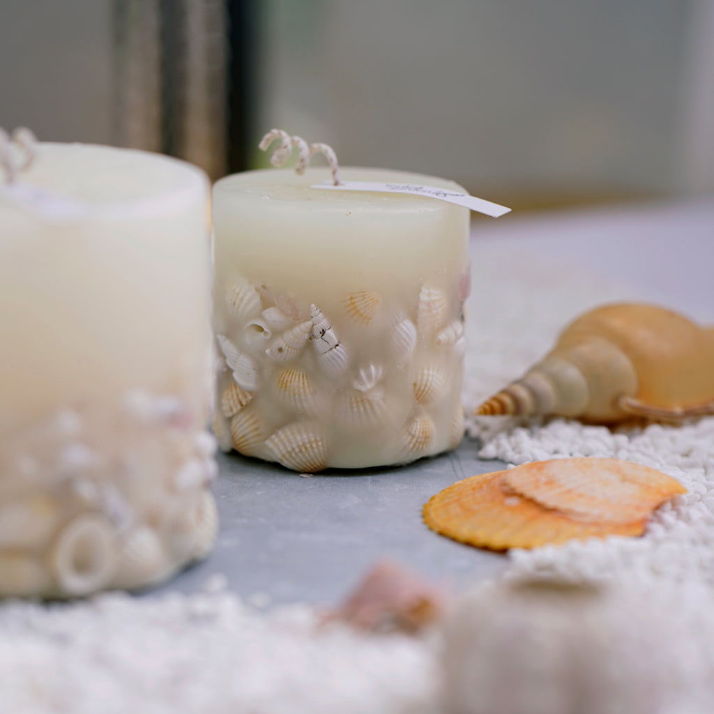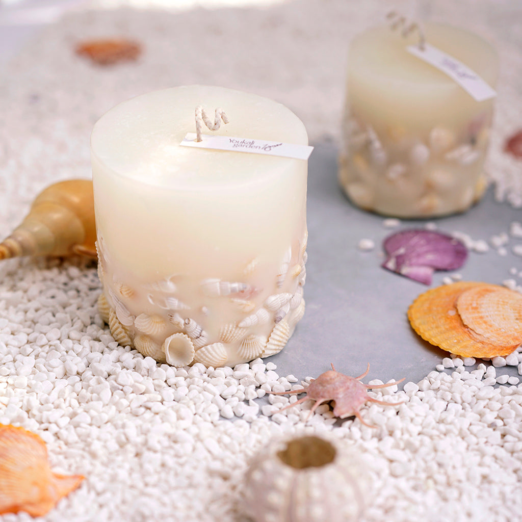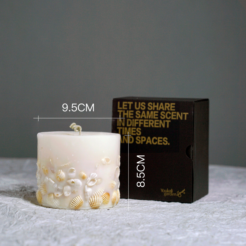Design Story : This product is inspired by the sea. The underwater world is mysterious and deep. When we stand at the seaside, we can always feel inner peace and relaxation. The product shell is made of wax and shells in different proportions, which will remain after burning, revealing romance. shimmer.