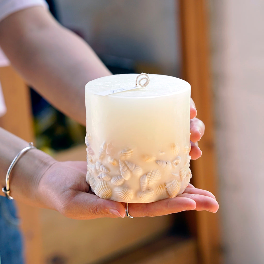 Handmade white Shells Art Scented Candle for Wedding,Gift,Home Decor-19 oz 68 Hours Long Burning Time