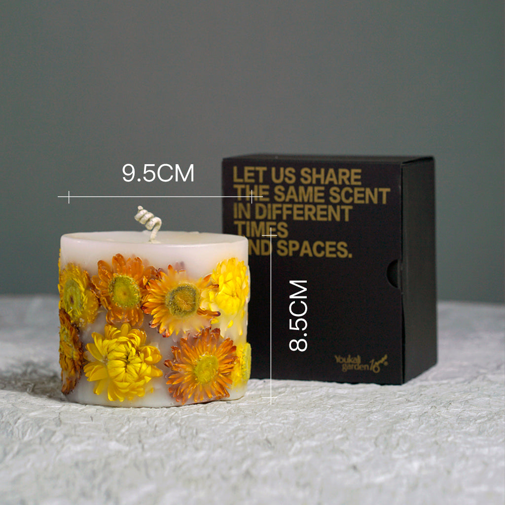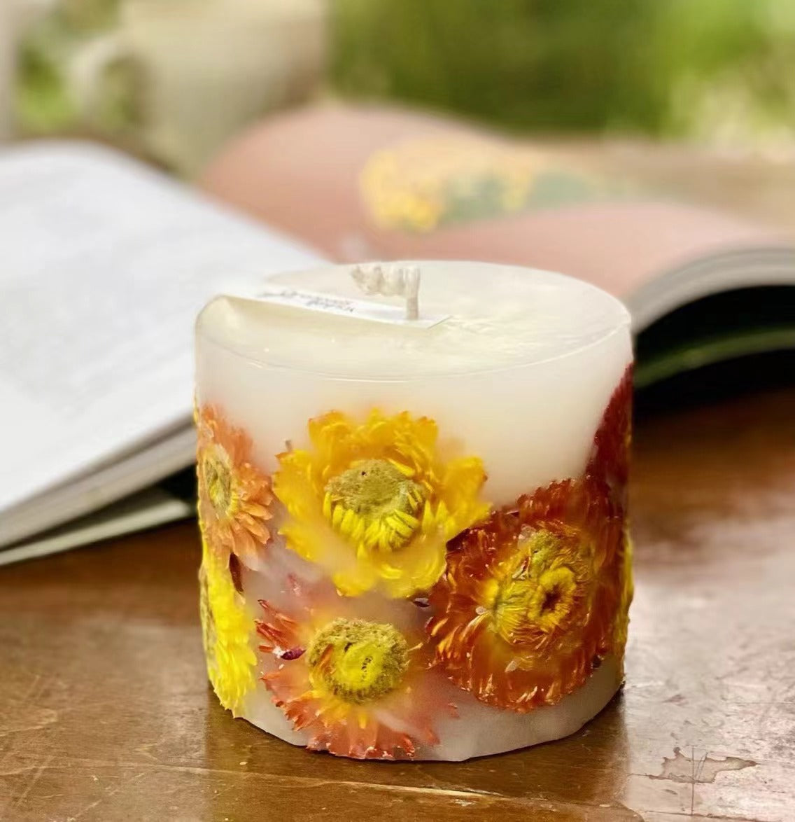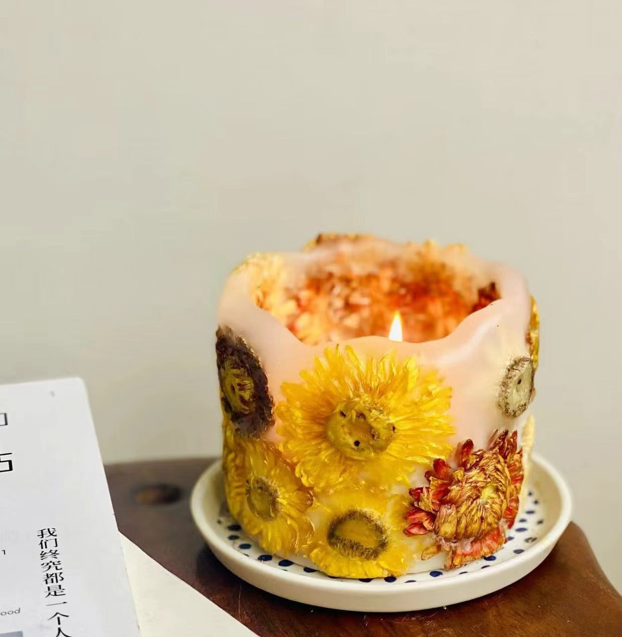 Design Story : This series of products is inspired by Impressionist paintings. Its rich colors and romantic expressions add a lot of beauty to our ordinary life. The outer shell of the product is made of different proportions of wax. The outer shell will remain after burning, and the light will shine through, making it romantic and warm. it's all handmade from wax and artificial flowers.